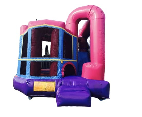 The Dream Modular 4n1 combo inflatable bounce house offers a gender-neutral color scheme for girls, making it the perfect addition to any backyard party. Upon entering the 15ftx18ft modular all-in-one bounce house, kids will be greeted by a high roof pink and purple modular castle. With 270 ft2 of play area, including a basketball goal, climbing ramp, slide, and large bouncing area, children will have plenty of space to enjoy hours of fun. Invite the Dream Modular 4n1 inflatable combo bouncer with its vibrant pink and purple colors to your event for an unforgettable experience for your guests.